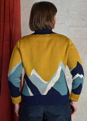Jacke mit eingestrickten Mustern aus dicker Bio-Baumwolle mit Reissverschluss. Eher eine Jacke als eine Strickjacke, perfekt für Herbst und Frühling, wenn Sie Ihrem Outfit ein wenig Palava-Farbe verleihen möchten.
